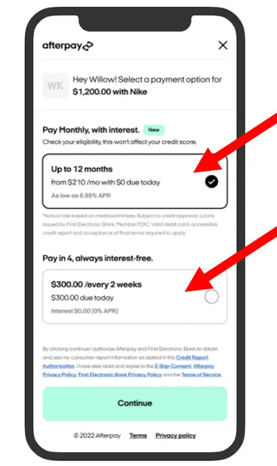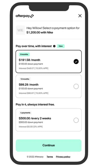 Currently Afterpay allows you to split your payments into a maximum of 4 installments. Each installment is due every two weeks from the date of purchase. Longer-term installment options beyond 4 payments are not available at this time. However, there is an exception for select products where eligible users can opt for a 12-month installment plan. This option is only visible in the user's Afterpay wallet and may involve interest charges directly billed to the user.