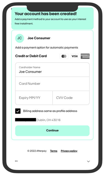 How do I set up an Afterpay account?