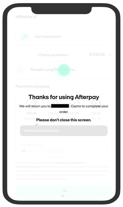 We pay the retailer in full and upfront on your behalf. You pay for the first instalment of 25% at the time of purchase, and the remaining three instalments will be automatically deducted from your nominated debit or credit card over the following six weeks.