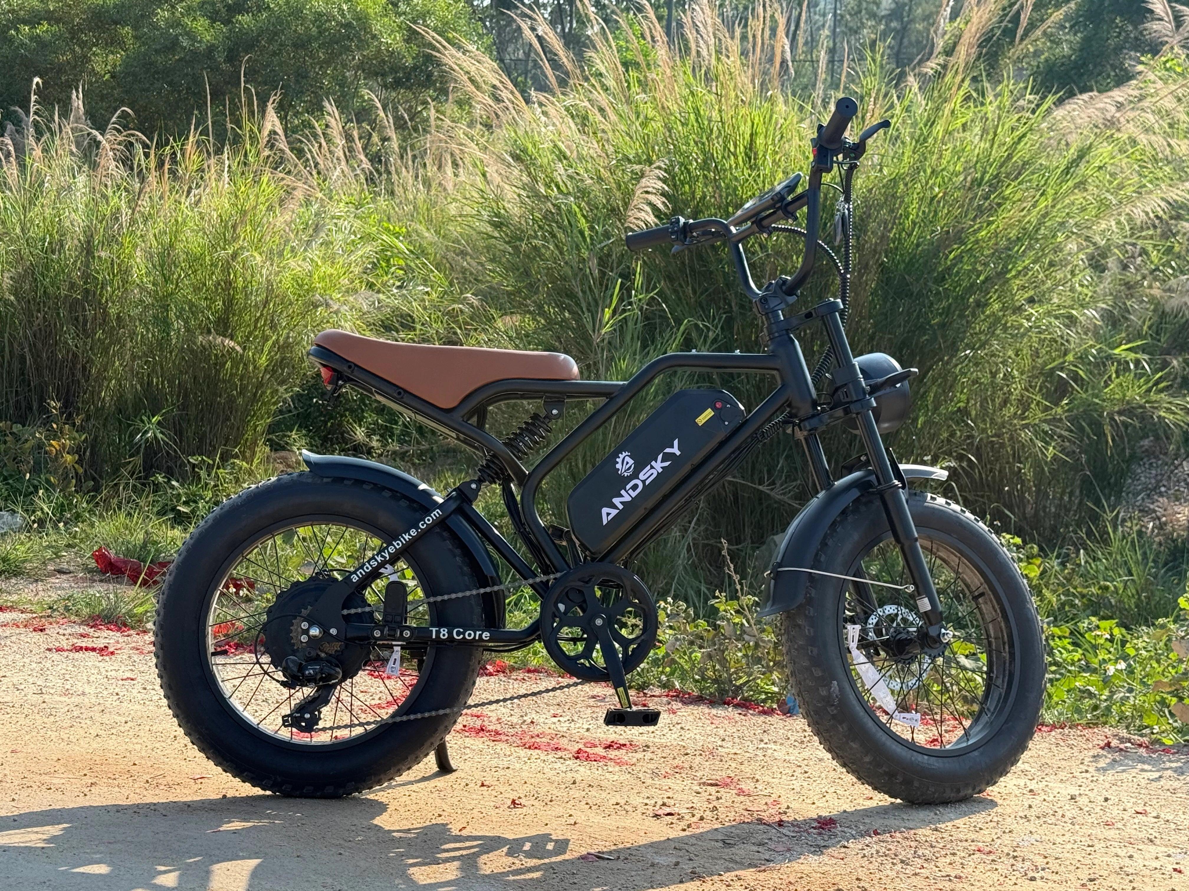 The 48V T8 Core features a top speed ranging from 45 km/h to 50 km/h, powered by a 1000W motor with a peak power of 1500W. It is equipped with a dual-shoulder suspension fork and additional rear shock absorption under the seat for enhanced comfort. Ideal for both urban and off-road trails, this bike delivers excellent performance across various terrains.